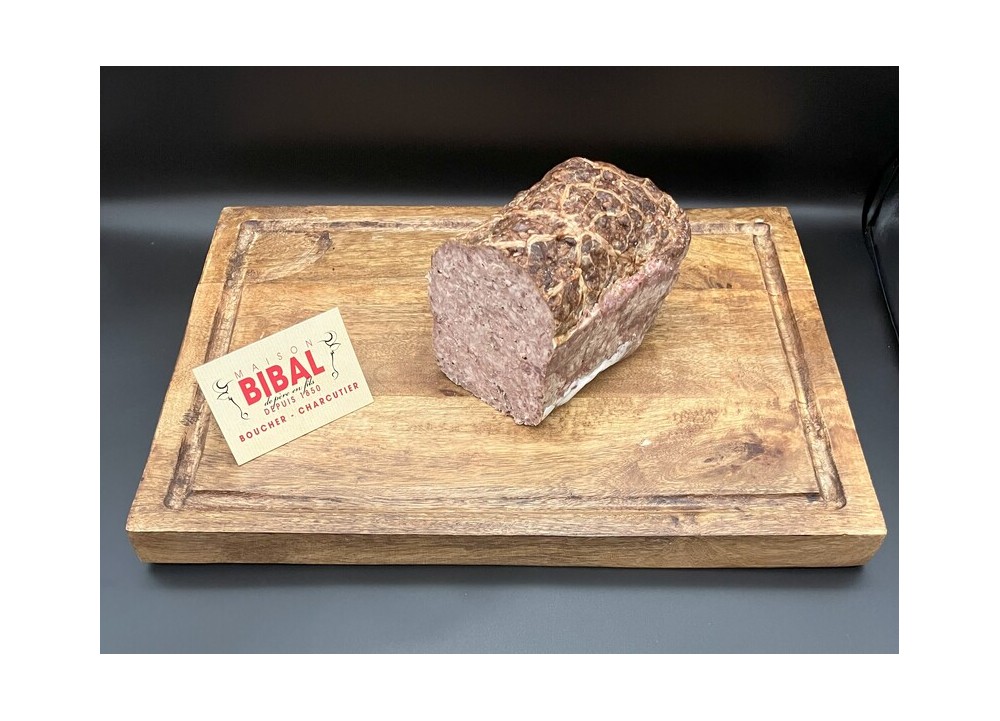 Le vrai pâté aveyronnais. De la gorge, du maigre et du foie de porc, le tout avec un assaisonnement spécial maison Bibal.